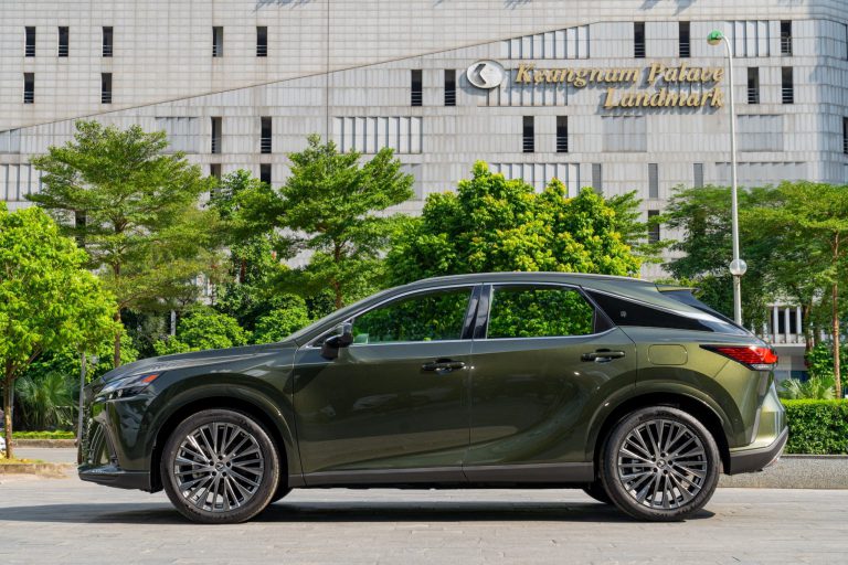 Phần thân xe Lexus RX350 Luxury 2024 nổi bật với những đường gân dập nổi tinh tế, tạo cảm giác mềm mại nhưng không kém phần sang trọng. Mui xe được nâng cao trong khi cạnh sau cửa sổ được hạ thấp, mang đến dáng vẻ thanh lịch với trọng tâm thấp. Mâm xe 21 inch đa chấu với thiết kế tinh xảo, sơn kim loại cao cấp tạo điểm nhấn ấn tượng.